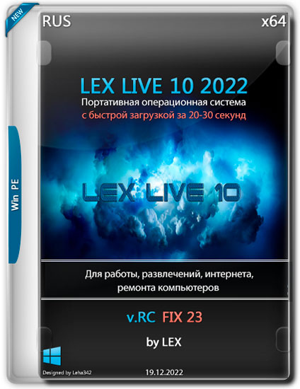 LEX LIVE 10 - обновлённая 19 декабря 2022 года портативная операционная система для работы, развлечений, интернета, ремонта компьютеров, которая загружается с USB устройства в оперативную память вашего ПК. Таким образом, данная система может работать даже если у вас нерабочий винчестер или он совсем отсутствует. Загружается 20-30 секунд !!!