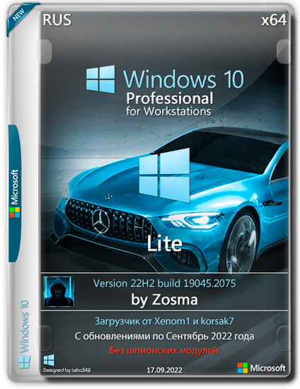 Данная легкая сборка была основана на оригинальном образе Microsoft Windows 10 x64. Интегрированы обновления по 16 сентября 2022 года, билд 19045.2075. Удалены все метро приложения кроме Магазина и Калькулятора и компоненты, связанные со шпионством и отправкой телеметрии. Применены различные твики для ускорения проводника, оптимизации работы оперативной памяти. Подробности ниже.