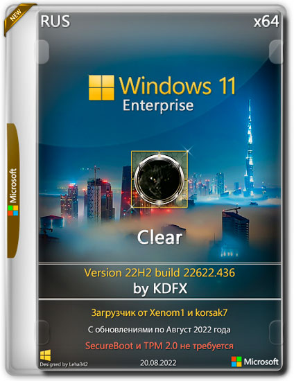 Основа - оригинальный образ от Майкрософт Windows 11 x64. Удалены и отключены некоторые компоненты. Установлены обновления по 12 августа 2022 года. Интерфейс системы оригинальный. Интегрирован загрузчик от Xenom1 и korsak7, SecureBoot и TPM 2.0 не требуется. Более подробную информацию о сборке читайте ниже.